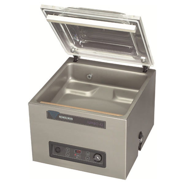 Ruostumattomasta teräksestä valmistettu Henkelman Jumbo 42 vaativaan käyttöön. Tällä vakumoit niin lihat, kalat, juustot kuin muutkin elintarvikkeet.